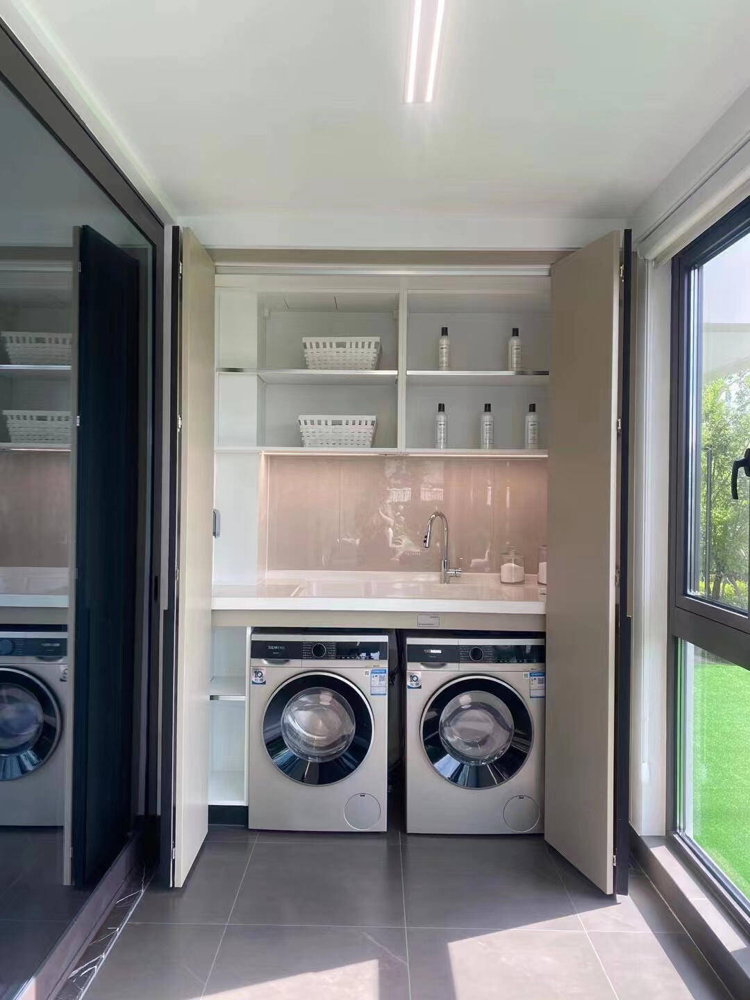 洗衣机隐藏柜:美观与实用的权衡洗衣机隐藏柜,旨在解决洗衣机直接暴露在阳光下易老化的问题,同时增加储物空间。
